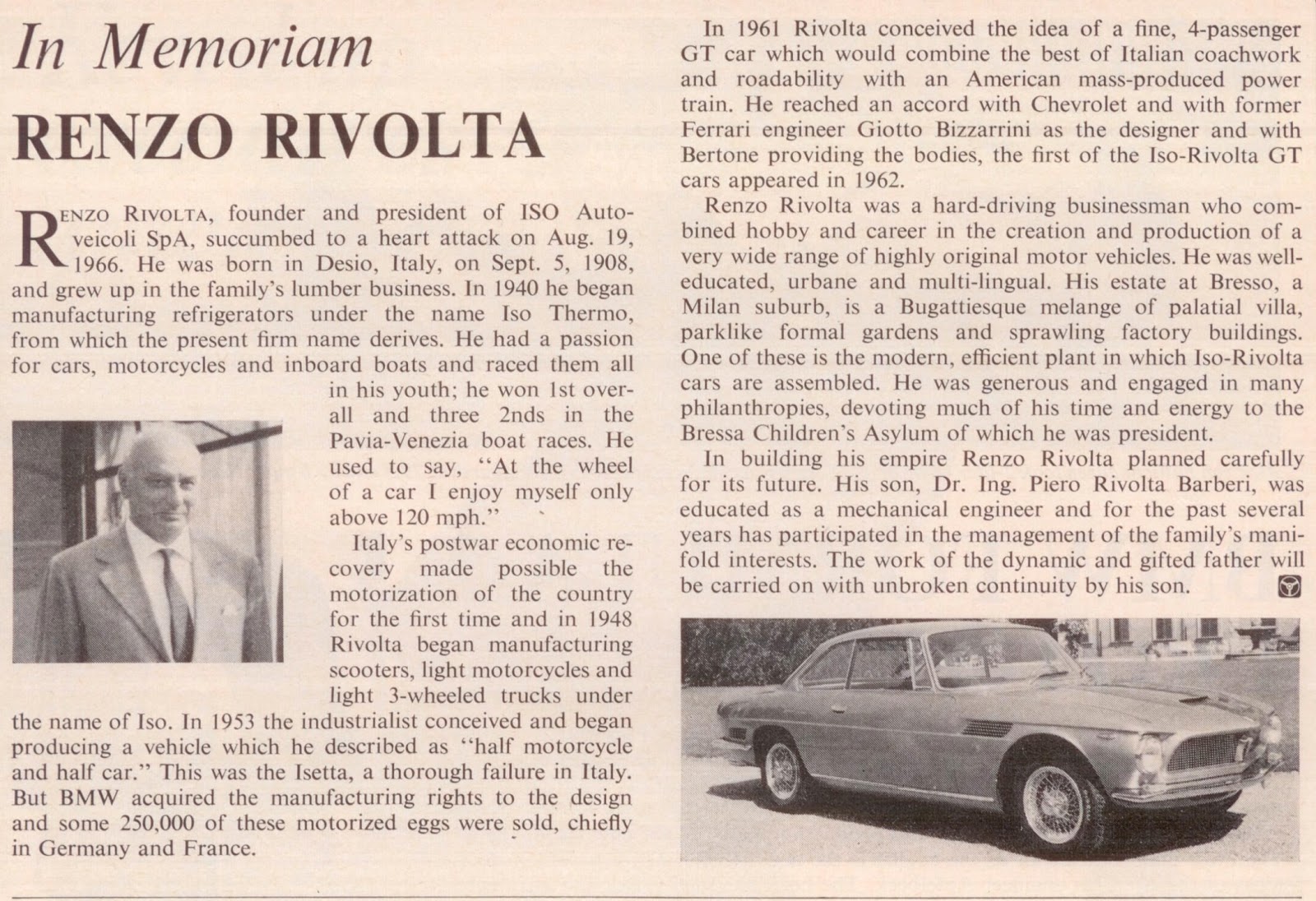 There aren’t many twingles out there, so I was very interested in this ISO single that came up on ebay. It’s a restored 1954 ISO. ISO is an Italian refrigerator company (hence the name) founded by Renzo Rivolta, that turned to bikes and later cars. ISO was the originator of the Isetta, which was a flop in Italy so BMW acquired the rights and the rest, is history. (see my post with Isetta in Munich’s BMW Museum)