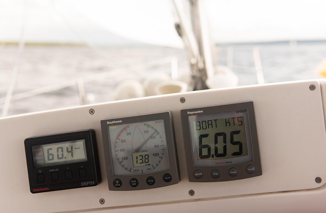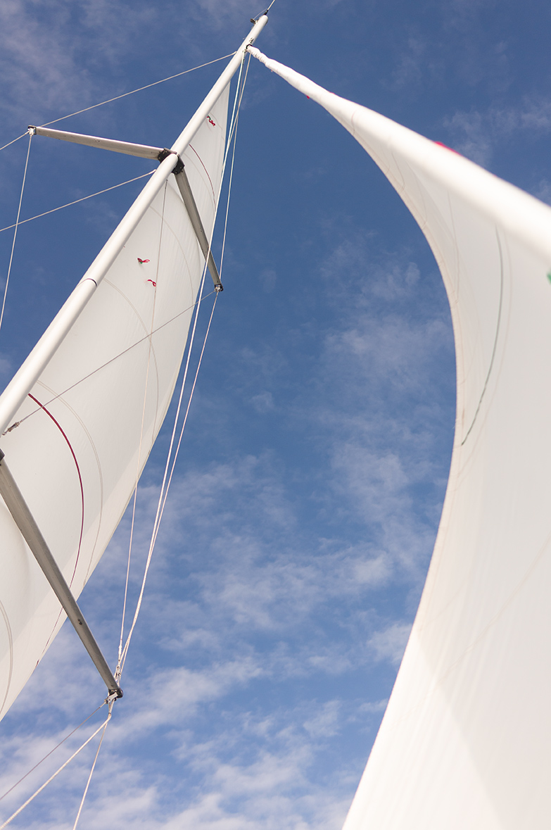 Saturday morning we went for a short hike and headed up to Hockey Stick Bay. After that we headed out on a good run ending in a small tear on the cruising chute from a spit-pin sticking out of the spreader turnbuckle. An easy fix. Winds were in the high teens but our route was almost straight north so it was a great sail. We were greeted by a completely empty Bay – a nice treat!