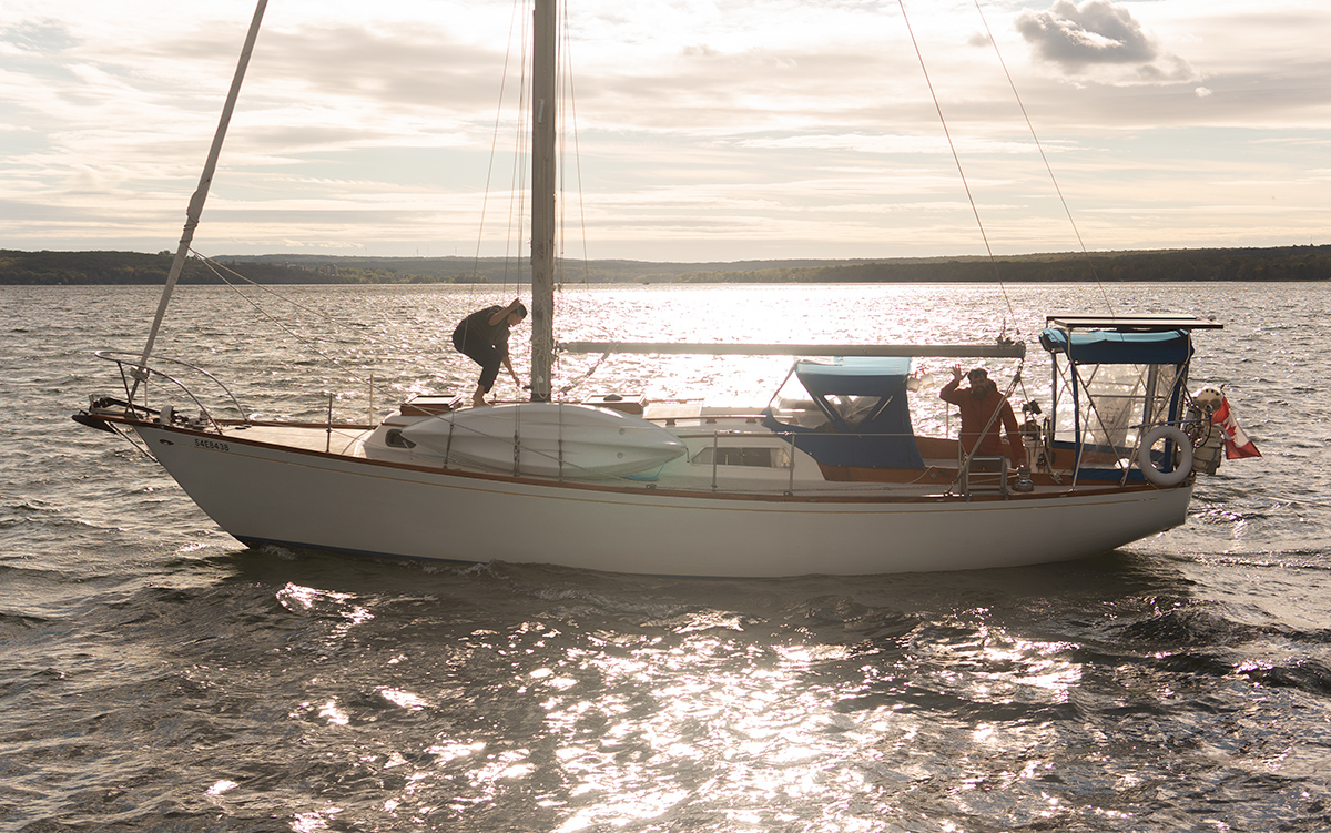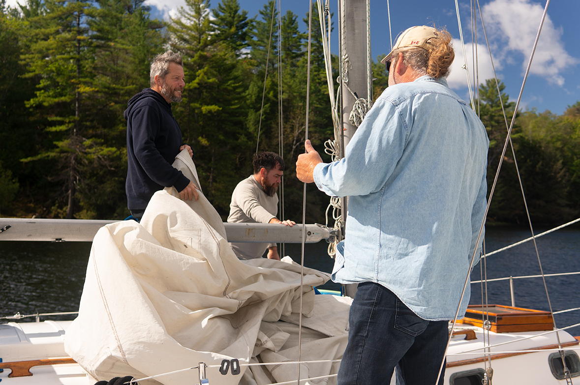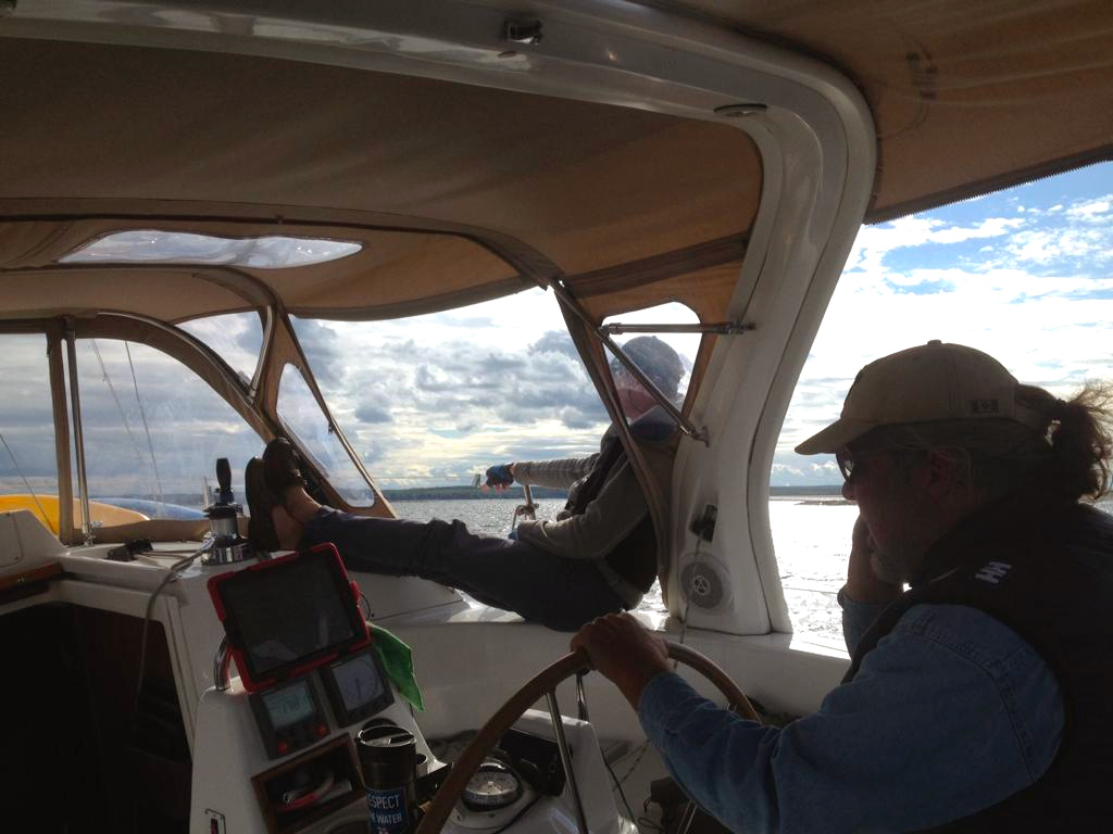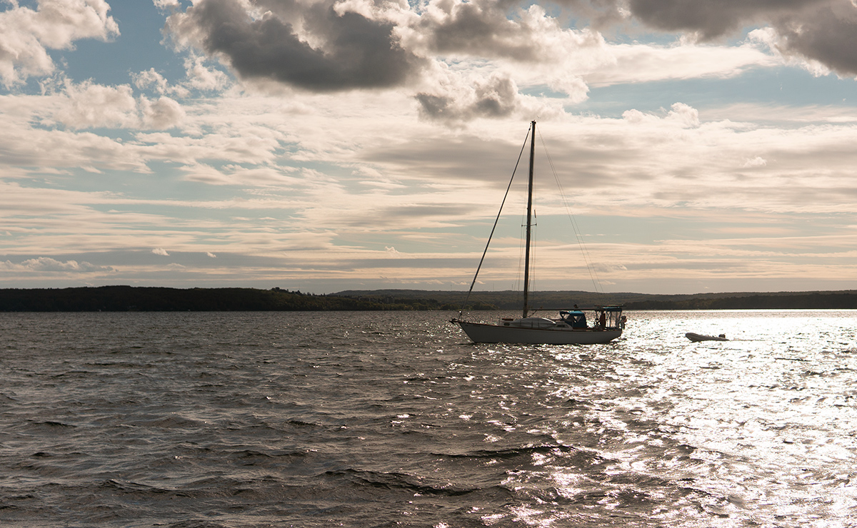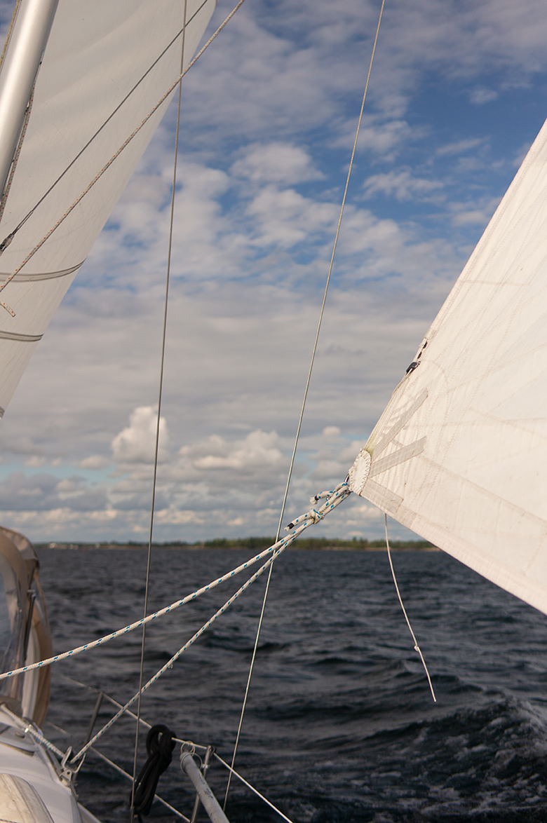Saturday morning was bright and sunny, with high winds. We took down Barry’s main sail and packed it up for me to stitch over the winter. Then we explored the small lake next to the bay and finally headed out for our afternoon sail home.