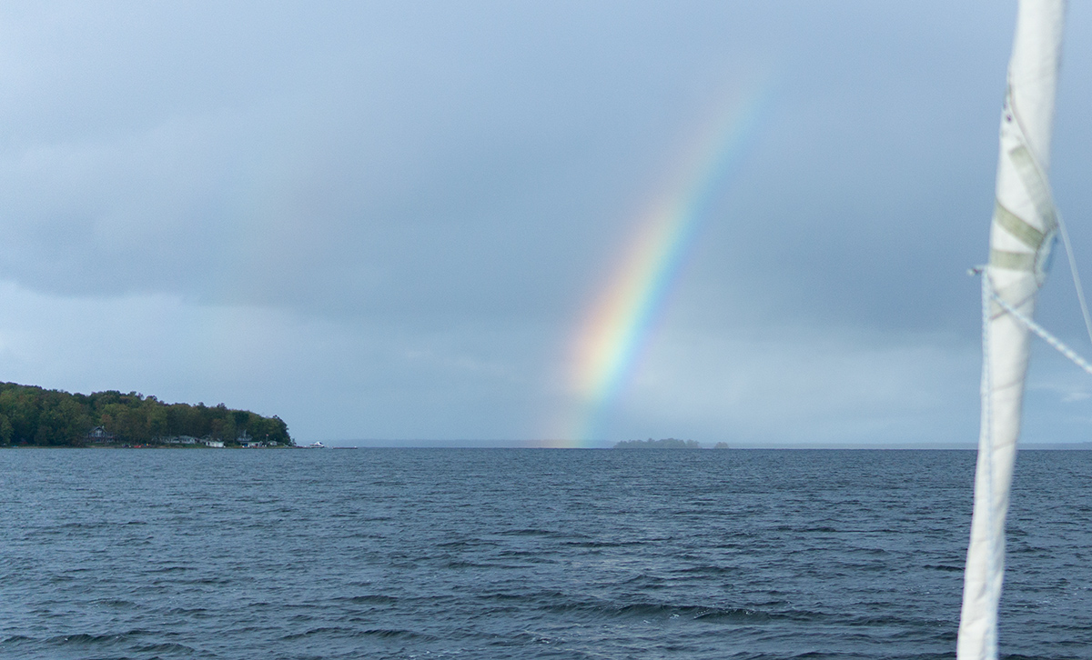 We attempted another Gentleman’s cruise, but with several crew changes and last minute cancellations, it was just Rufus, Malcolm and me. With a forecast for rain and 20knots of wind we decided it was a great weekend to head out, we weren’t wrong. After all, preparations and arrangements had been made. As a sign of encouragement we were greeted with a beautiful rainbow as we headed out of Midland Bay on Friday night.